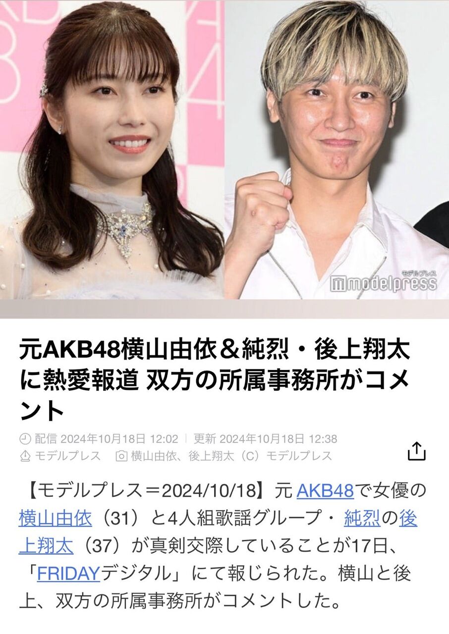 @vm_hlb純烈・後上翔太 元AKB48・横山由依との交際は順調…期待される〝紅白史上初のサプライズ〟(東スポWEB) #Yahooニュース news.yahoo.co.jp/articles/df486…
