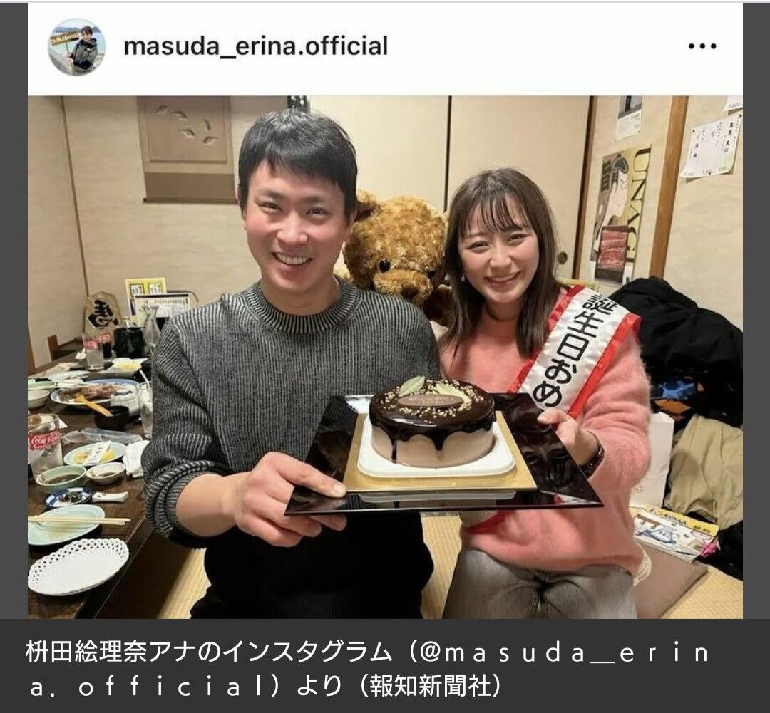 枡田絵理奈アナ、「愛知に里帰り」 広島・堂林翔太とのほろ酔い夫婦ショット